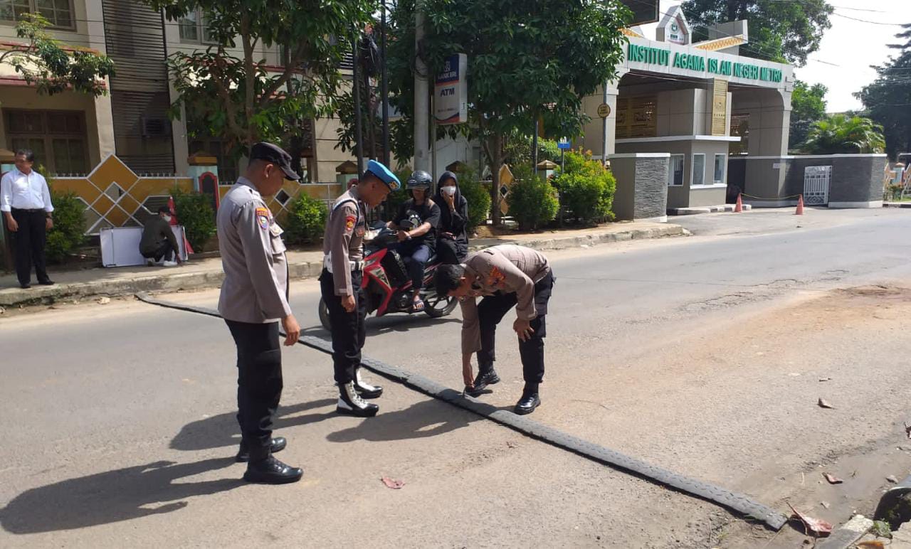 Jejamo.com, Kota Metro – Sejumlah personel Polsek Metro Timur memperbaiki kondisi gundukan pengurang kecepatan atau speed bump yang terpasang di Jalan Ki Hajar Dewantara, Kelurahan Iringmulyo, Kecamatan Metro Timur, Kota Metro. Pasalnya, keberadaan speed bump alias polisi tidur sebanyak 3 titik di jalan tersebut mendapat sorotan sejumlah masyarakat, hingga menuai pro dan kontra.