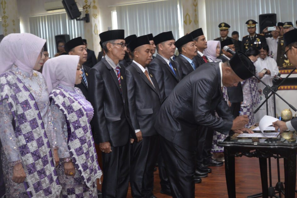 Pelantikan dan pengambilan sumpah jabatan yang dipimpin oleh Ketua Pengadilan Negeri Metro, Vivi Purnawati, berlangsung di Ruang Rapat Paripurna DPRD Kota Metro.