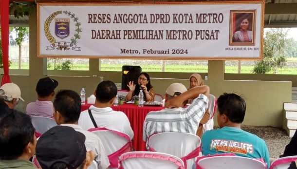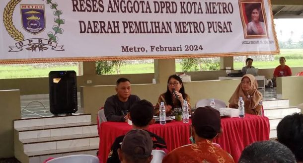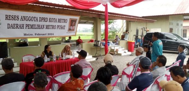Jejamo.com, Kota Metro – Wakil Ketua Komisi II Dewan Perwakilan Rakyat Daerah (DPRD) Kota Metro, Ancilla Hernani menyerap aspirasi masyarakat yang hadir dalam reses di Pendopo Petani Kota Metro, Senin, 5/2/2024.