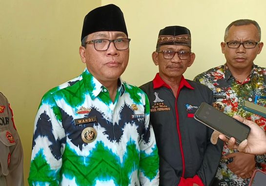 Wali Kota Metro Wahdi Siradjuddin memberikan keterangan kepada wartawan di acara khitanan massal PKPK Kota Metro, Jumat, 1/3/2024. | Dok.