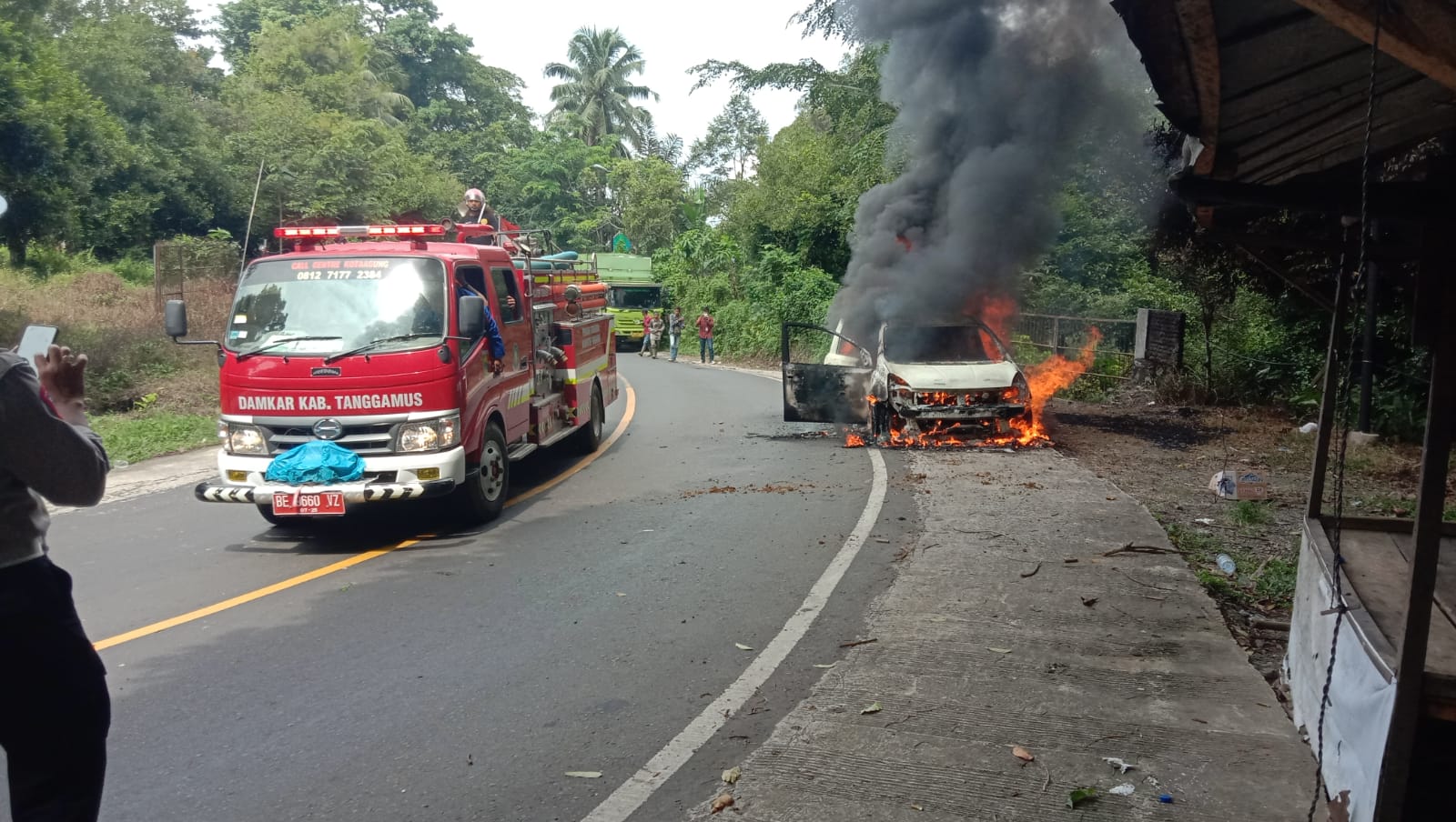 Petugas Satlantas Polres Tanggamus, Aiptu Tjasudin, mengatakan, pengemudi dan penumpang mobil yang terbakar merupakan pasangan suami istri asal Kota Agung.