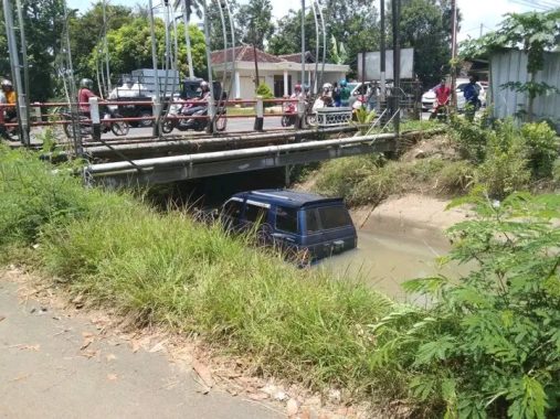 Jejamo.com, Kota Metro – Satu unit minibus terjun bebas ke saluran irigasi di Jalan AH Nasution Yosodadi, Metro Timur, Kota Metro, Minggu, 27/3/2022. Peristiwa itu terjadi saat si sopir ingin mengisi bahan bakar solar.