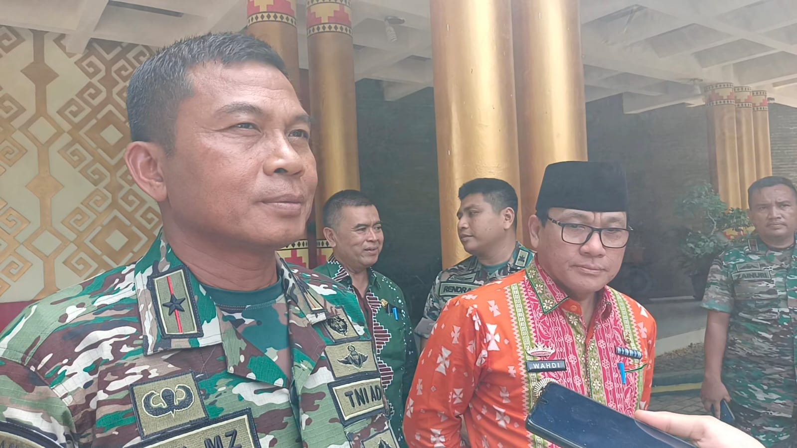 Danrem 043/Gatam, Brigjen TNI Iwan Ma’ruf Zainudin, didampingi Wali Kota Metro Wahdi, memberikan keterangan kepada wartawan, Jumat, 26/1/2024. | Abid/Jejamo.com