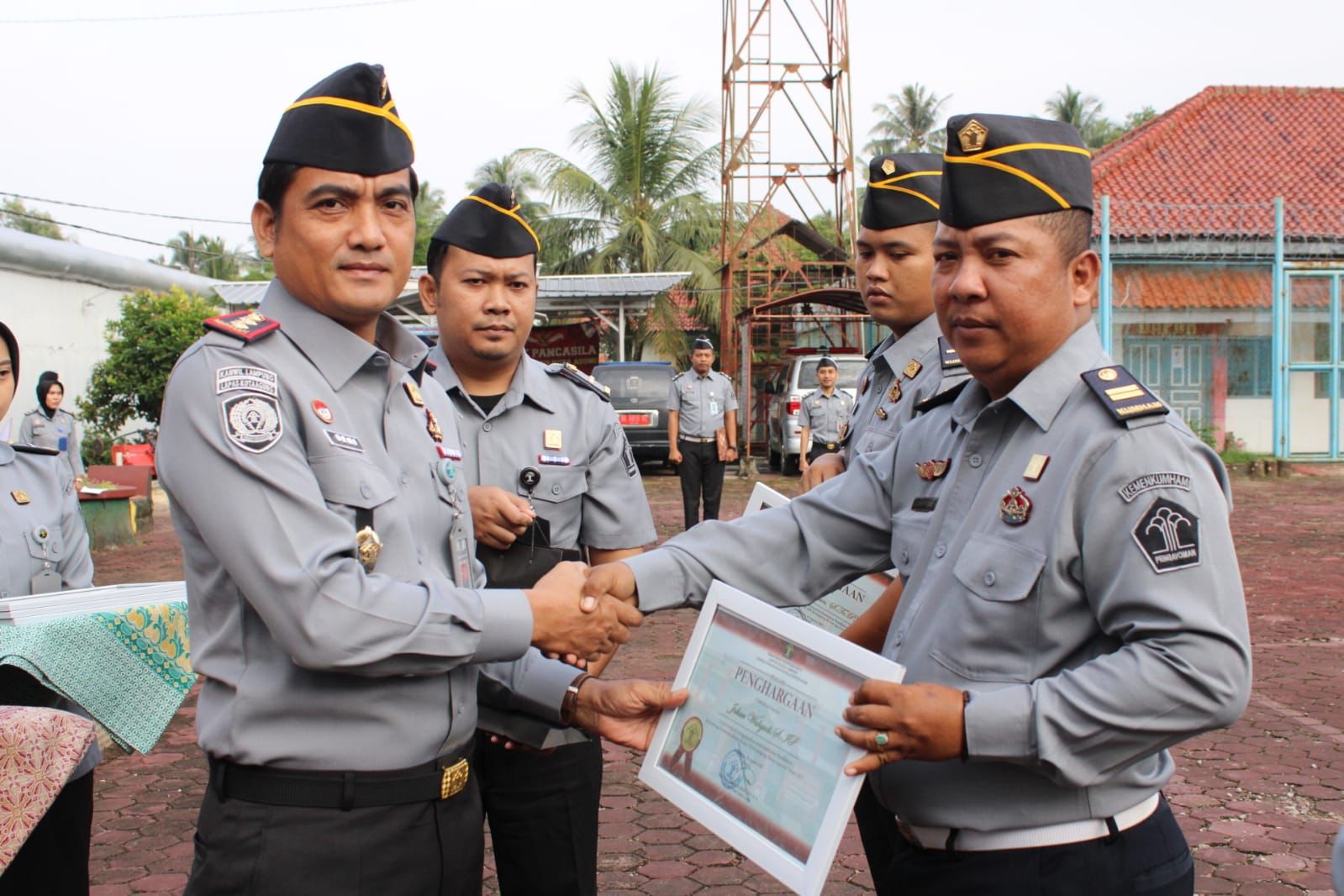 Penghargaan diberikan langsung oleh Kepala Lapas kepada 3 staf Kesatuan Pengamanan Lembaga Pemasyarakatan (KPLP) dan 2 anggota P2U pada acara apel pagi, Selasa, 29/8/2023.