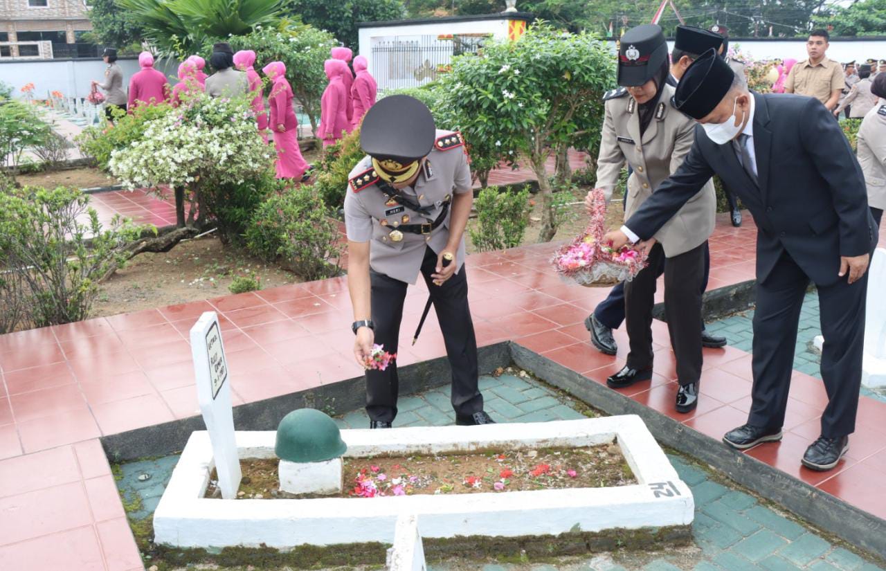 Dalam kesempatan itu, Kapolres Kota Metro AKBP Heri Sulistyo Nugroho yang memimpin upacara ziarah dengan didampingi Ketua Bhayangkari Cabang Metro, Siska Heri dan Forkopimda Kota Metro. Penghormatan kepada para pahlawan diwujudkan dengan mengheningkan cipta, peletakan karangan bunga, dan pelantunan doa terbaik untuk arwah pejuang kemerdekaan.