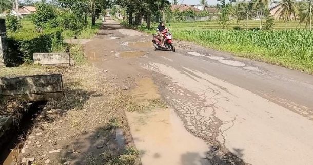 “Kacau, jalannya rusak dan bahaya ini. Apalagi kalau musim hujan lubang digenangi air kan bahaya, gak kelihatan,” keluhnya.
