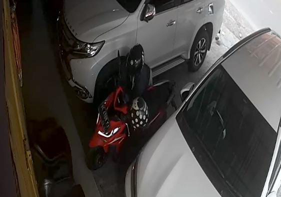 Sejurus kemudian, maling tersebut dengan santai membobol stop kontak motor. Tidak sampai setengah menit, motor yang terparkir di antara dua mobil tersebut, berhasil dibobol dan dibawa kabur.