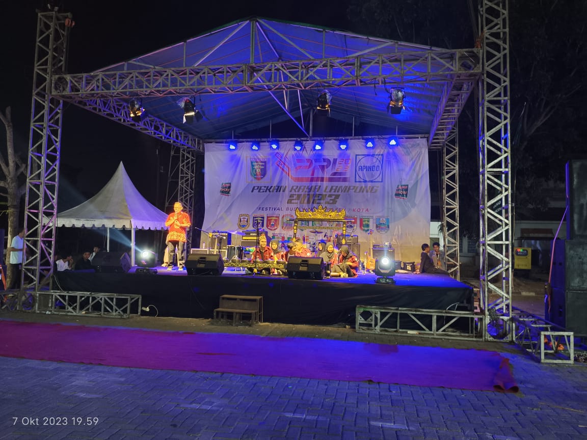 Jejamo.com, Bandar Lampung – Kabupaten Tanggamus melalui Sanggar Artcom Debingi SMA Negeri 1 Kota Agung mengisi acara malam kebudayaan Pekan Raya Lampung di PKOR Way Halim Bandar Lampung, Jumat malam, 7/10/2023.