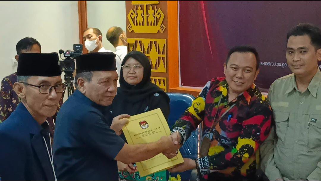 Ketua DPD Partai Nasdem Kota Metro secara resmi menyerahkan berkas pendaftaran bacaleg ke KPU setempat, Kamis, 11/5/2023. | Anggi/Jejamo.com