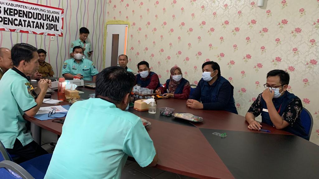 Tim penilai Ombudsman RI Perwakilan Lampung  saat berbincang dengan jajaran Dinas Kependudukan dan Pencatatan Sipil Lampung Selatan, Selasa, 18/10/2022. | Diskominfo Lamsel