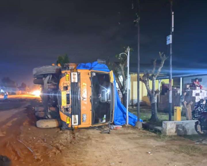 Yang terbaru, Tugiman kembali menyaksikan kendaraan bermuatan tepung terigu yang terguling akibat melewati lubang Jalan Budi Utomo pada Kamis petang kemarin, 6/1/2022.