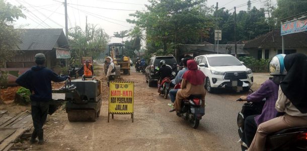 Koordinator lapangan pekerjaan tersebut, Andi, menyebut ditugaskan untuk melakukan perataan badan jalan untuk mengantisipasi kerusakan yang lebih parah disebabkan air hujan.