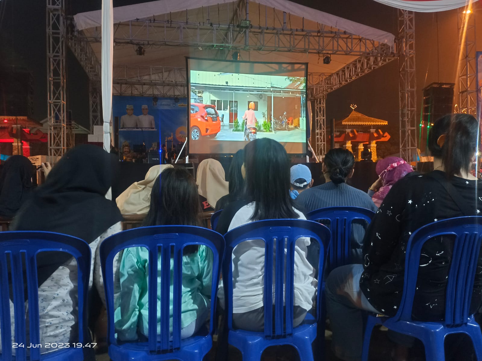 Jejamo.com, Kota Metro – Dinas Kepemudaan, Olahraga, dan Pariwisata Kota Metro menggelar pemutaran film bertemakan kebudayaan yang dikemas modern, tanpa mengubah makna, berjudul Angken Muaghi di Samber Park Metro, Sabtu malam, 24/6/2023.