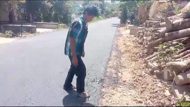Perbaikan jalan yang diharapkan warga berkualitas baik, justru gampang rusak  meski baru saja lima hari rampung dikerjakan. Jalan sepanjang dua kilometer itu sudah mulai terkelupas, retak, bergelombang, bahkan sebagian telah hilang terpotong.