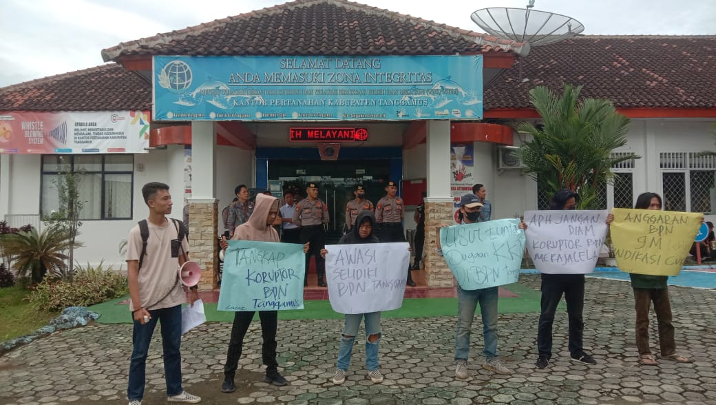 Dalam orasinya, Koordinator Lapangan Candra Setiawan menyampaikan beberapa sikap yaitu pertama meminta aparat penegak hukum untuk melakukan pengawasan secara utuh kepada BPN Tanggamus. Kedua, meminta Kepala BPN Tanggamus agar mundur dari jabatannya karena jika diteruskan dapat mengakibatkan kerusakan pada pada generasi mendatang, serta meminta BPK dan BPKP melakukan audit secara terbuka terhadap berbagai kegiatan BPN Tanggamus.