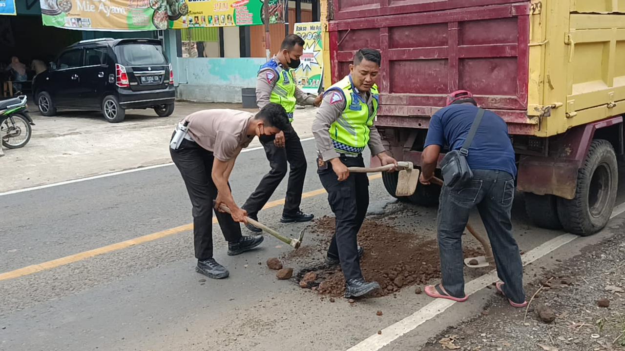 “Penimbunan menggunakan material batu krokos itu dilakukan secara swadaya, dengan harapan memperlancar arus lalu lintas dan mengurangi angka kecelakaan,” jelas AKP Amsar.