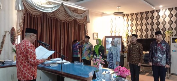 Sebanyak 5 orang pejabat Administrator Eselon III a dan III b yang dilantik yakni Angga Widarma dengan jabatan Kepala Bagian Perencanaan dan Keuangan pada Sekretariat Daerah, Riza Husna dengan jabatan Sekretaris Dinas Tenaga Kerja, Usman dengan jabatan Sekretaris Dinas Kependudukan dan Pencatatan Sipil, Muzlina R dengan jabatan Sekretaris Dinas Sosial, dan Aprizal dengan jabatan Kepala Bidang Pelayanan Pendaftaran Penduduk pada Dinas Kependudukan dan Pencatatan Sipil.(*) (Zairi)