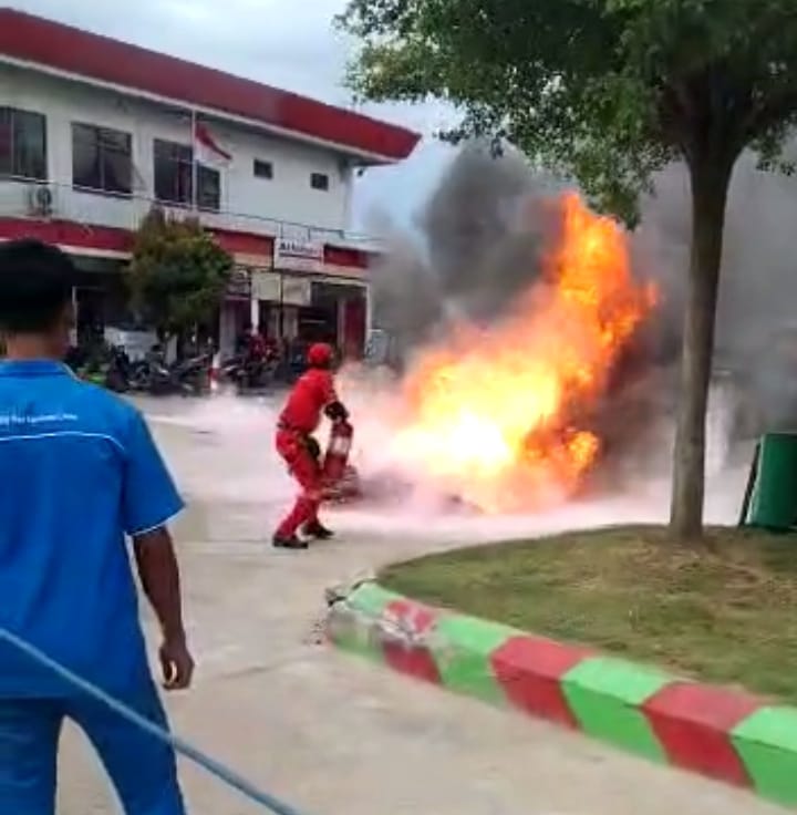 Jejamo.com, Pringsewu – Sebuah sepeda motor terbakar di Stasiun Pengisian Bahan Bakar Umum (SPBU) Tambakrejo, Kecamatan Gading Rejo, Kabupaten Pringsewu, Senin, 12/12/2022.