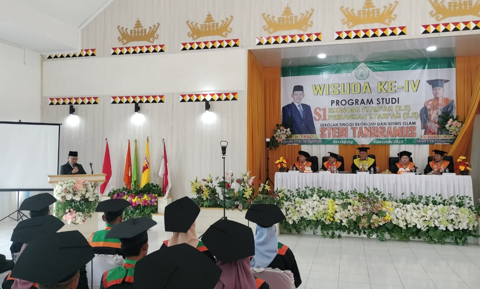 Dirinya menyampaikan selamat kepada STEBI Tanggamus yang pada hari ini telah meluluskan dan mewisuda 52 orang mahasiswa Program Studi Strata 1, yang terdiri dari 4 orang jurusan Perbankan dan 48 orang jurusan Ekonomi Syariah. Berasal dari 3 Kampus STEBI, yaitu 12 orang dari Kampus STEBI Gisting, 34 orang dari Kampus STEBI Kota Agung, dan 6 orang dari Kampus STEBI Kelumbayan. “Tentunya, kampus STEBI Tanggamus ini, secara tidak langsung, telah memberikan kontribusi terhadap pembangunan sumberdaya manusia di Kabupaten Tanggamus,” imbuhnya.