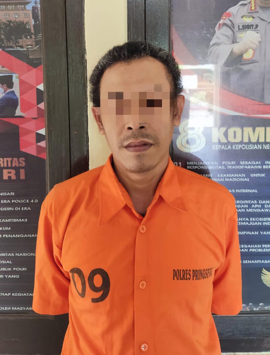 Pelaku berinisial AM (37) warga Dusun Sumberdadi Pekon Margodadi, Kecamatan Ambarawa, Kabupaten Pringsewu diamankan polisi di rumahnya pada Jumat malam kemarin, 18/11/2022.