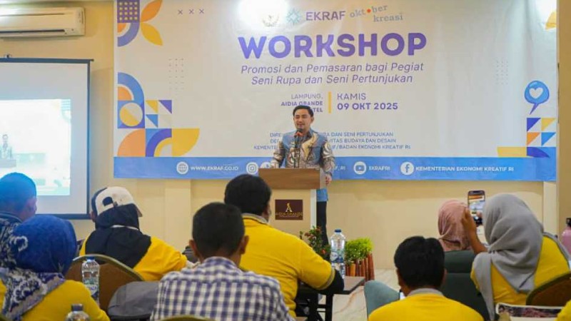 Jejamo.com, Kota Metro – Pemerintah Kota Metro berkolaborasi dengan Kementerian Pariwisata dan Ekonomi Kreatif (Kemenparekraf) serta Dewan Perwakilan Rakyat Republik Indonesia (DPR RI) untuk memperkuat kapasitas pelaku seni dan pelaku ekonomi kreatif di Bumi Sai Wawai melalui kegiatan Workshop Promosi dan Pemasaran bagi Pegiat Seni Rupa dan Seni Pertunjukan serta Workshop Pengembangan Kemampuan Teknologi Informasi dan Komunikasi yang digelar Kementerian Pariwisata dan Ekonomi Kreatif yang digelar di Aidea Grande Hotel, Kamis (9/10/2025).