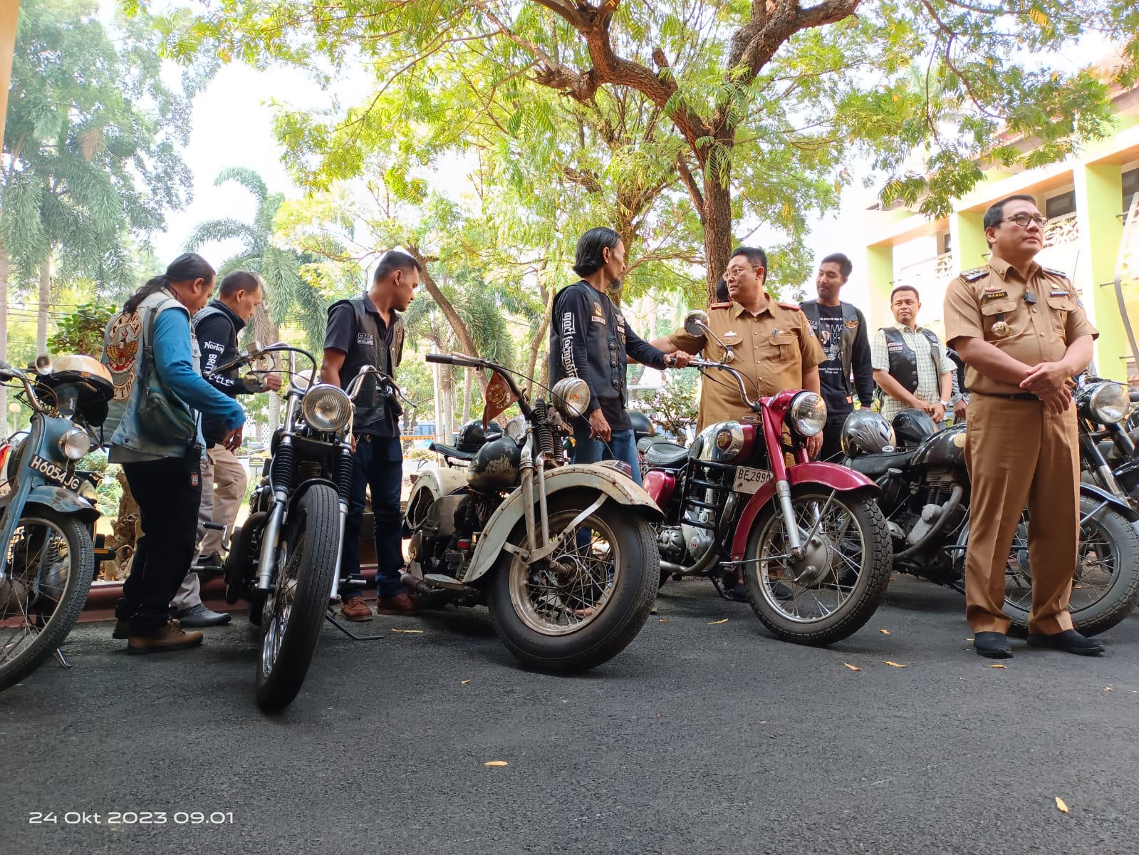 Wali Kota Metro Wahdi Siradjuddin saat menerima komunitas Motor Antik Club Indonesia, Selasa, 24/10/2023. | Abid/Jejamo.com