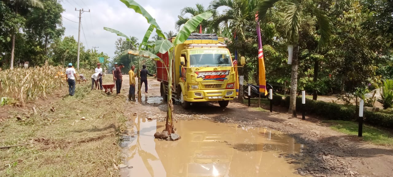 “Kerusakan jalan ini cukup parah dan kami berjibaku bergotong royong agar dapat meringankan kesulitan pengguna jalan yang lewat, ” ungkap Toni, tokoh masyarakat setempat.
